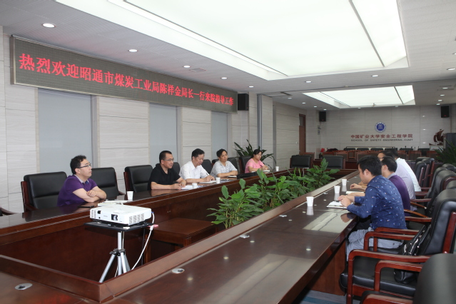陈祥金局长从昭通市煤炭企业布局结构、安全监管面临的难题和转型升级发展趋势等方面介绍了昭通市煤炭产业的基本情况:昭通市地处云、贵、川三省结合处,煤炭储量165.82亿吨,探明储量102.27亿吨,昭通盆地褐煤储量达81.98亿吨,为中国南方第二大褐煤田,煤炭开采和洗选业为全市七大支柱产业之一;昭通市煤炭行业主要面临四个方面的问题:瓦斯突出、煤自燃等灾害制约产业发展;民营企业占比较高,企业安全重视程度不够;管理水平较低,缺乏高水平专门管理人才;灾害事故频发,政府监管压力大。此行就是希望在煤矿安全治理方面得到矿大的技术支持。