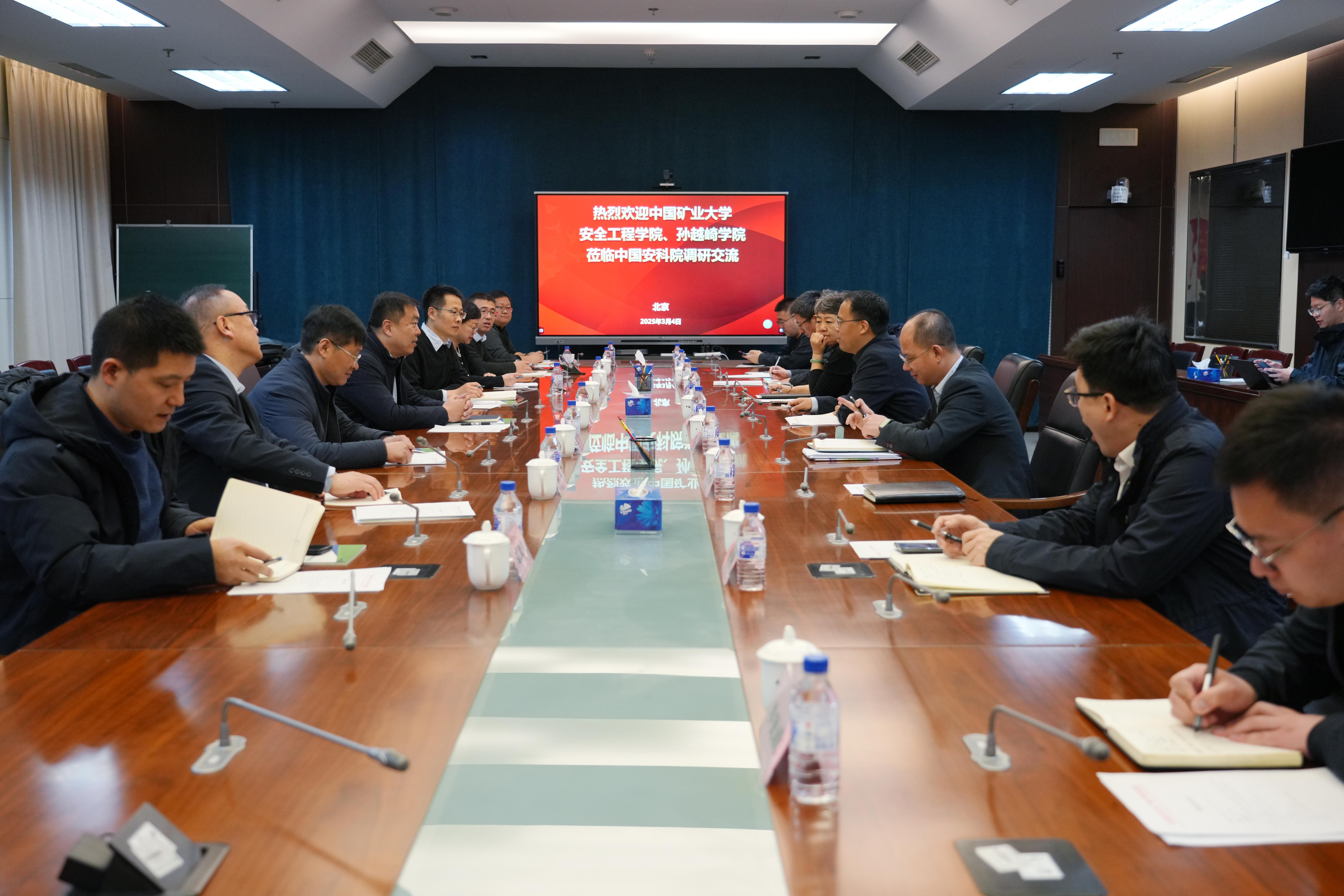 3月4日,院党委书记宋冰、院长翟成带队赴中国安全生产科学研究院就双方合作进行调研。中国安全生产科学研究院党委副书记、院长周福宝主持交流。