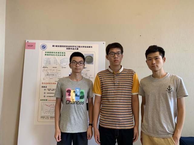 有三件作品从342件作品中脱颖而出,其中两件作品进入到了最终的决赛,一件作品获得全国三等奖。决赛过程中,两个团队在海报展示、现场答辩两个环节都展示了一流的实力,最终凭借作品的先进性、科学性和选手较好的发挥,周福宝教授指导的《煤田废热回收利用装置》和程健维副教授指导的《非凝固绿色浆液封堵瓦斯抽采钻孔方法与应用》两件作品都获得了一等奖。