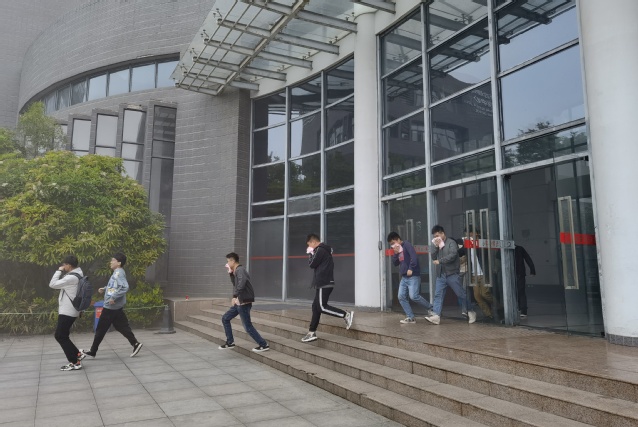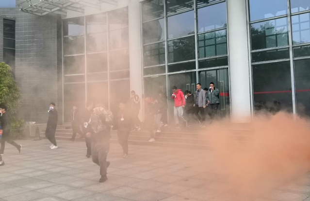 下午4:00演习正式开始,保卫处在矿业科学中心各个楼层模拟释放烟雾并拉响警报,参与师生按照预案迅速疏散逃生,并撤离到指定的安全区域。演习结束后,校保卫处副处长王垚磊对本次演习进行了点评,肯定了本次演习中师生的应急表现,并讲解了火灾发生时逃生注意事项、应急处置方法等消防安全常识。此次演习取得圆满成功。