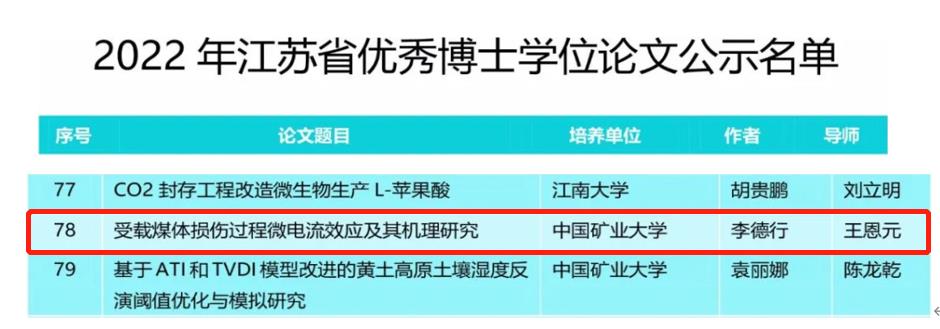 博士研究生李德行(导师王恩元)的学位论文《受载煤体损伤过程微电流效应及其机理研究》被评为2022年江苏省优秀博士学位论文;新澳门六合彩预测