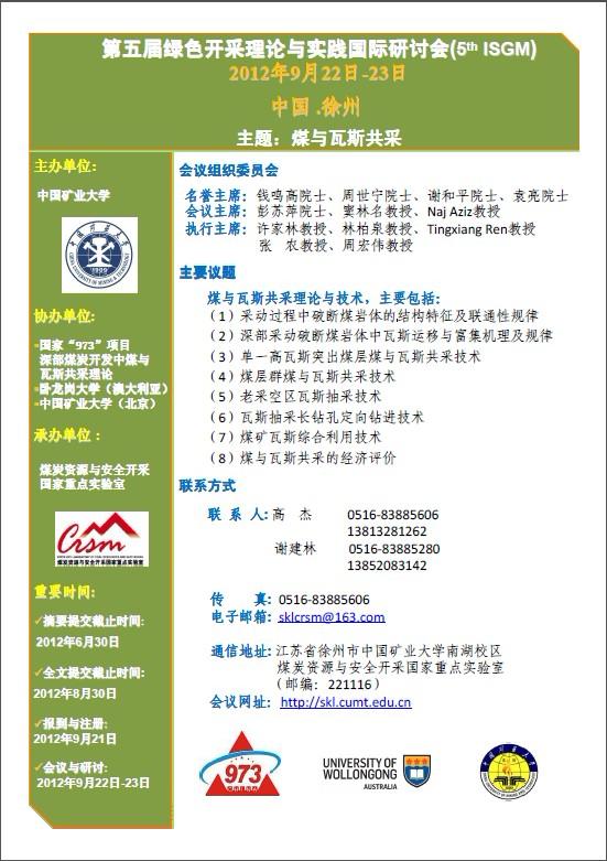 第五届绿色开采理论与实践国际研讨会征文通知