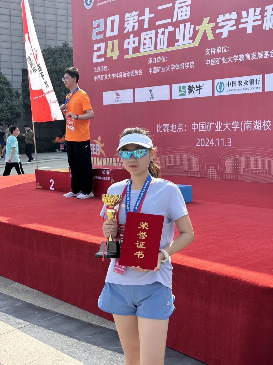 安全科学与工程专业2022级硕士研究生,2024 第十二届中国矿业大学半程马拉松比赛女子组冠军,多次作为主力队员代表中国矿业大学参加高校百英里分站赛,获得2019年武汉站第五名、2022年上海站第六名。
