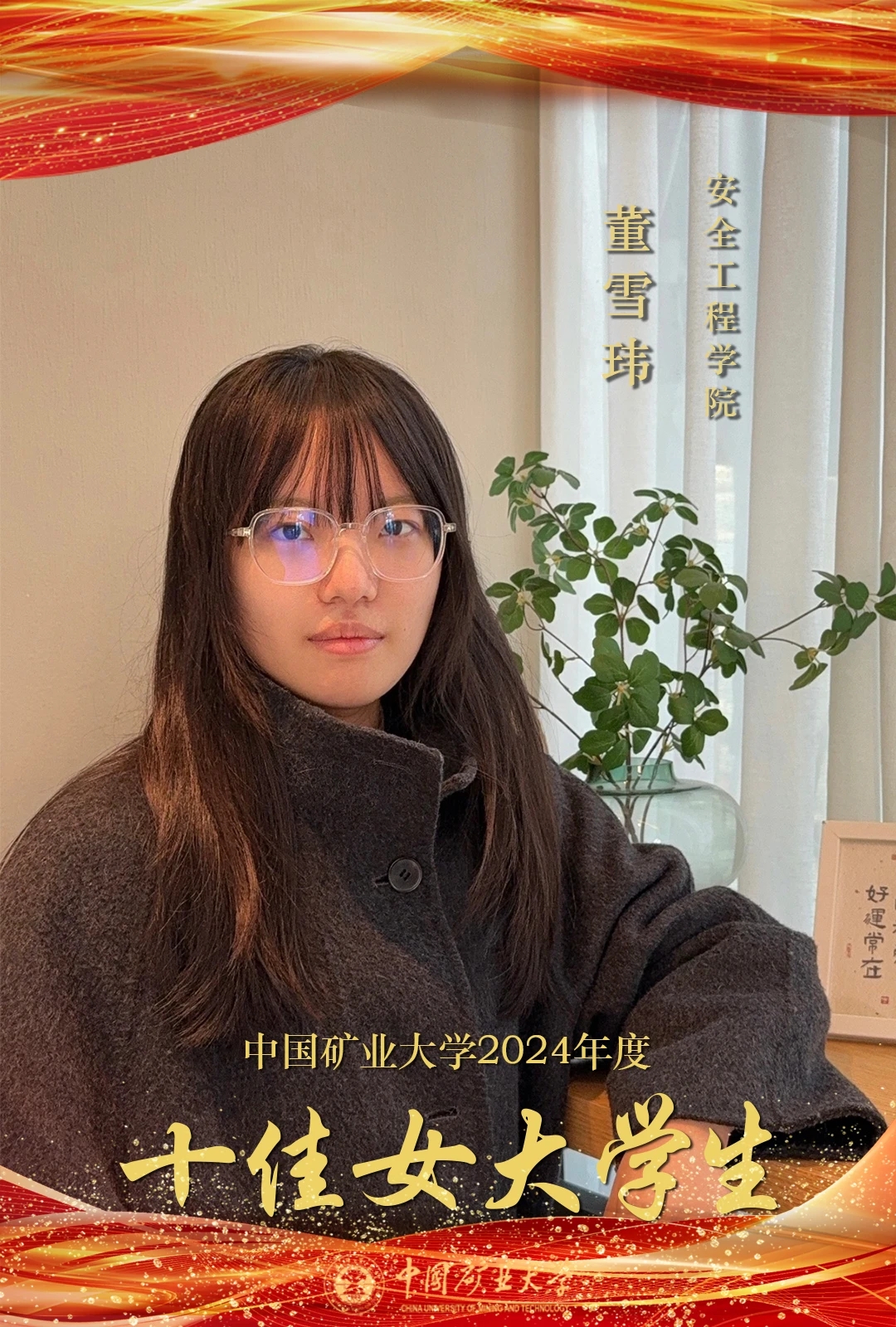 董雪玮,女,汉族,共青团员,安全工程专业2023级5班,先后获得国家奖学金、第二十一届五一数学建模竞赛二等奖、校高等数学学习之星、校十佳女大学生、校优秀学生干部、山东省济南市长清区青鸟计划“优秀志愿者”等荣誉称号。